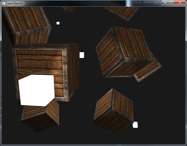 我们在前面的教程中已经学习了许多关于OpenGL中光照的知识,其中包括冯氏着色(Phong Shading)、材质(Material)、光照贴图(Lighting Map)以及不同种类的投光物(Light Caster)。在这一节中,我们将结合之前学过的所有知识,创建一个包含六个光源的场景。我们将模拟一个类似太阳的定向光(Directional Light)光源,四个分散在场景中的点光源(Point Light),以及一个手电筒(Flashlight)。