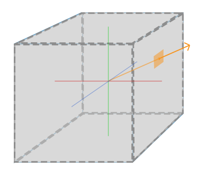简单来说,立方体贴图就是一个包含了6个2D纹理的纹理,每个2D纹理都组成了立方体的一个面:一个有纹理的立方体。你可能会奇怪,这样一个立方体有什么用途呢?为什么要把6张纹理合并到一张纹理中,而不是直接使用6个单独的纹理呢?立方体贴图有一个非常有用的特性,它可以通过一个方向向量来进行索引/采样。假设我们有一个1x1x1的单位立方体,方向向量的原点位于它的中心。使用一个橘黄色的方向向量来从立方体贴图上采样一个纹理值会像是这样: