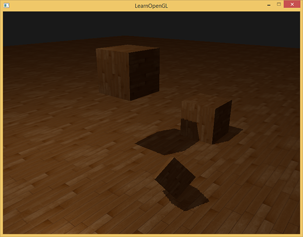 如果你做对了,你会看到地板和上有立方体的阴影。你可以从这里找到demo程序的源码