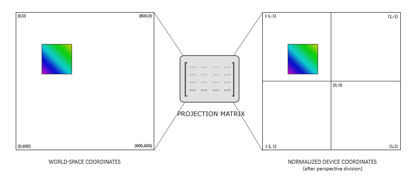 glm::mat4 projection = glm::ortho(0.0f, 800.0f, 600.0f, 0.0f, -1.0f, 1.0f);