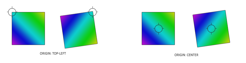 旋转变换可能看起来稍微有点让人望而却步。我们从变换教程里面知道旋转总是围绕原点(0,0)转动的。因为我们指定了四边形的左上角为(0,0),所有的旋转都会围绕这个(0,0)。简单来说,在四边形左上角的