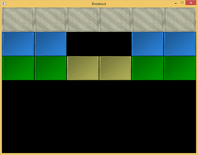 Breakout不会只是一个单一的绿色笑脸,而是一些由许多彩色砖块组成的完整关卡。我们希望这些关卡有以下特性:他们足够灵活以便于支持任意数量的行或列、可以拥有不可摧毁的坚固砖块、支持多种类型的砖块且这些信息被存储在外部文件中。
